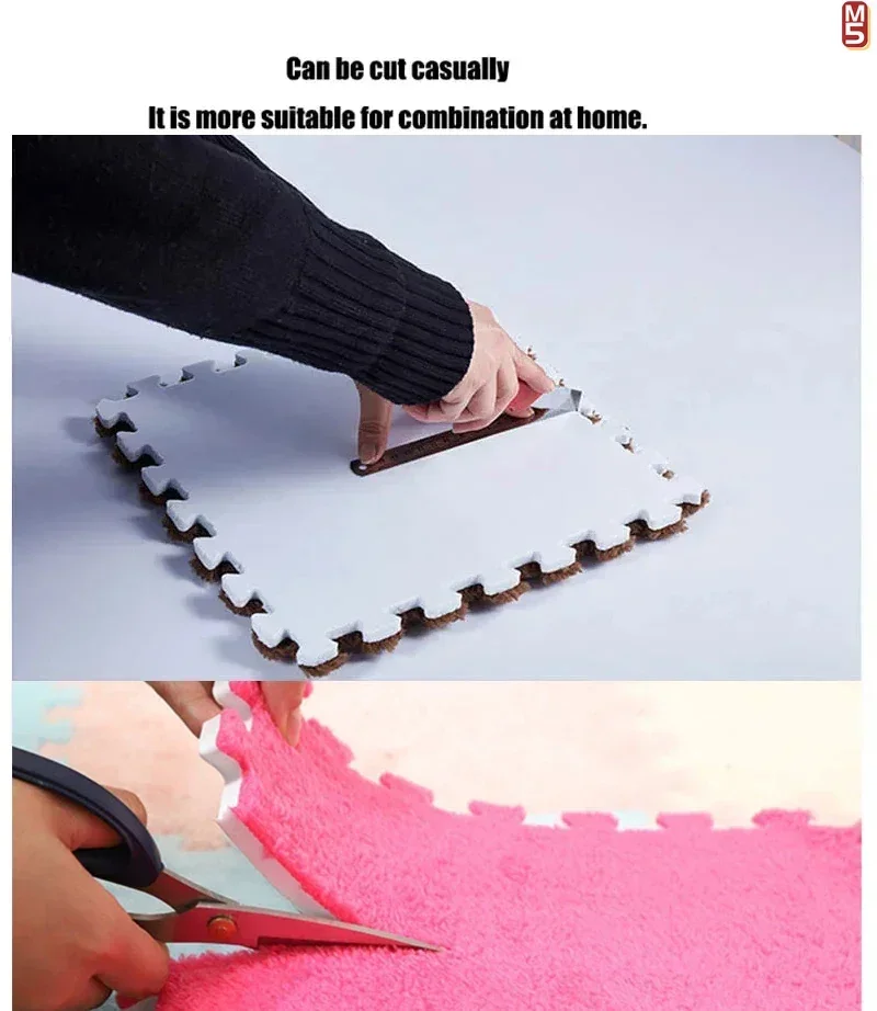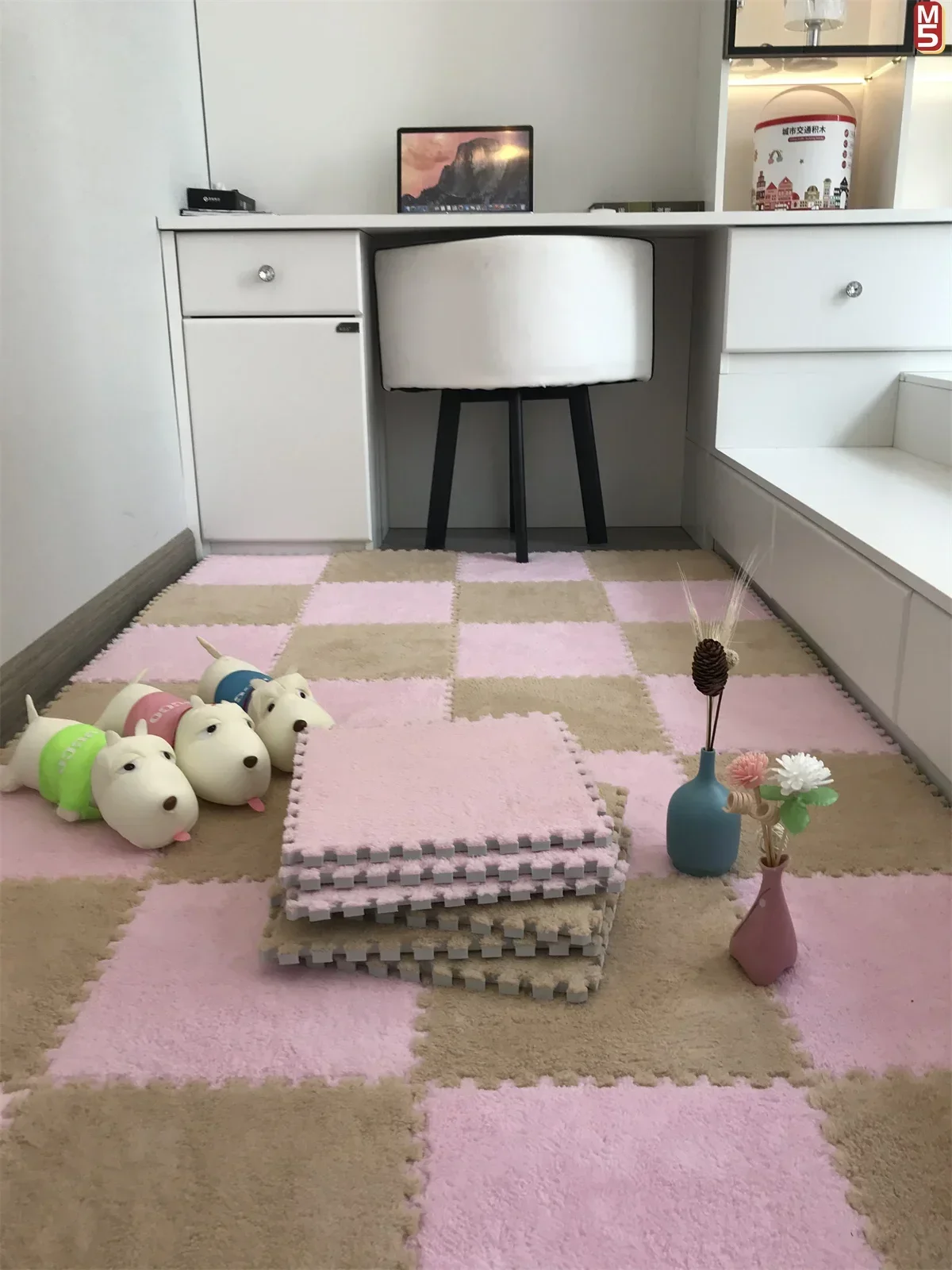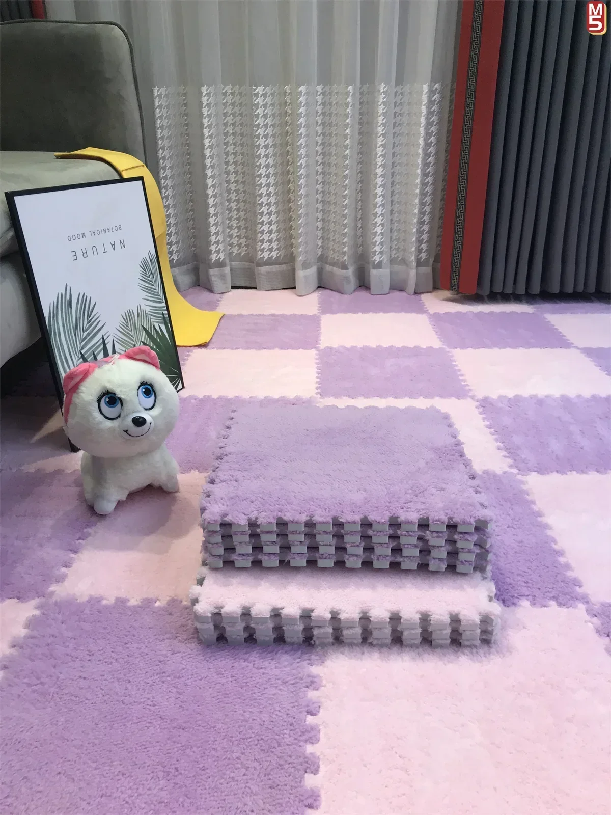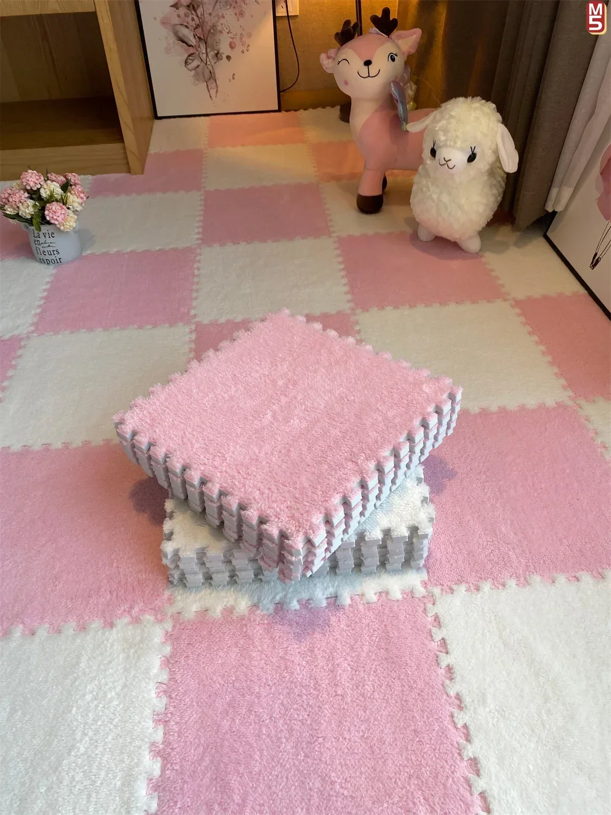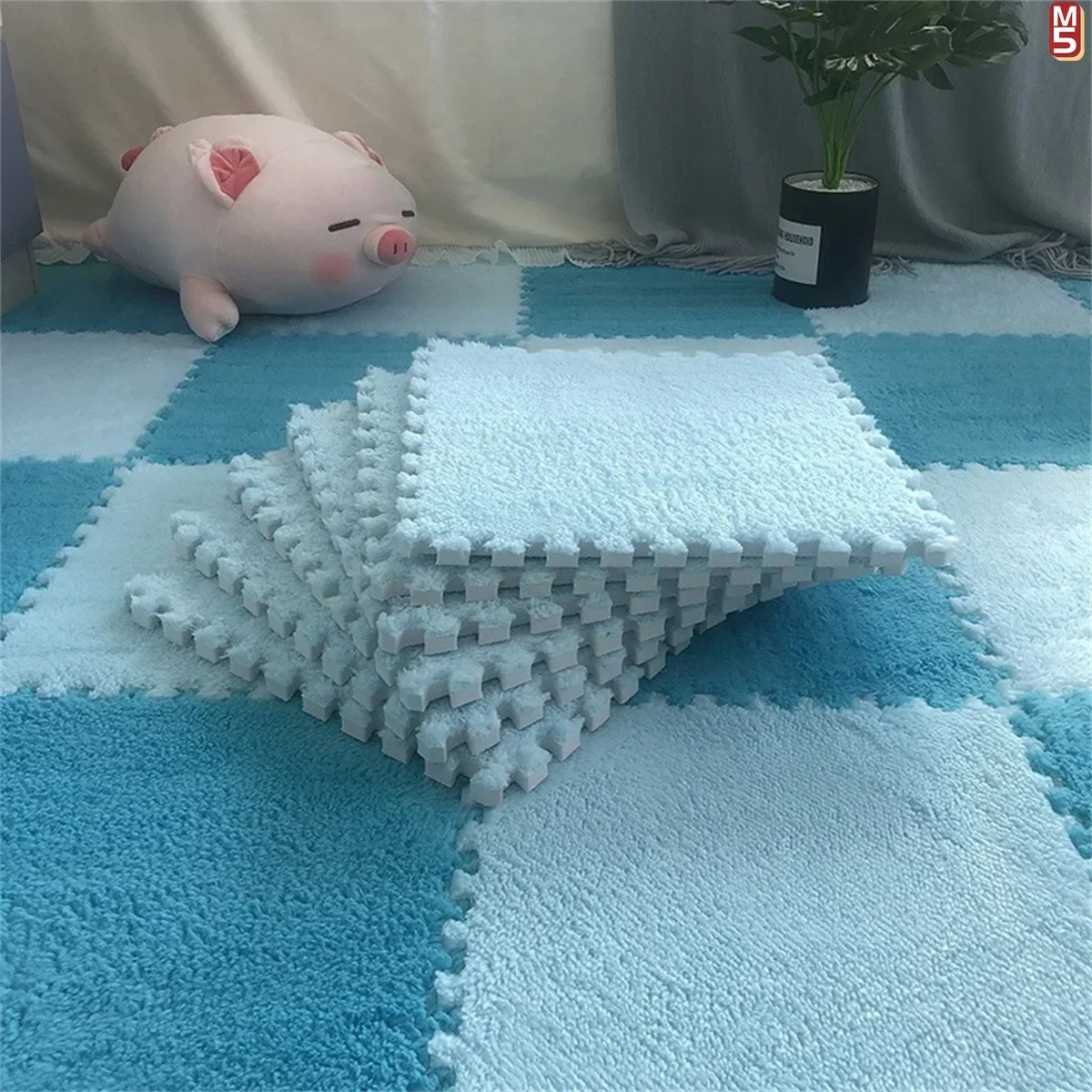 1-10 PCS Plush Foam Floor Mats Carpet Square Foam Floor Mats Fluffy Interlocking Floor Tiles for Bedroom Kindergarten Playground