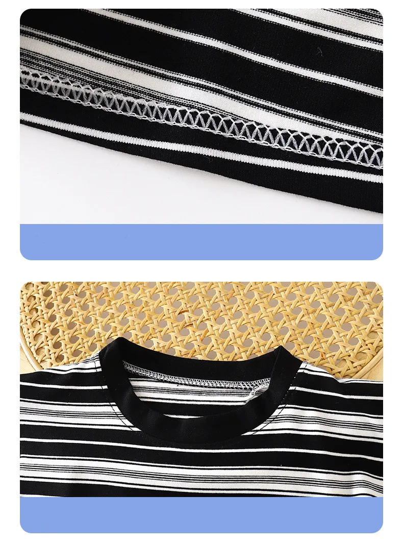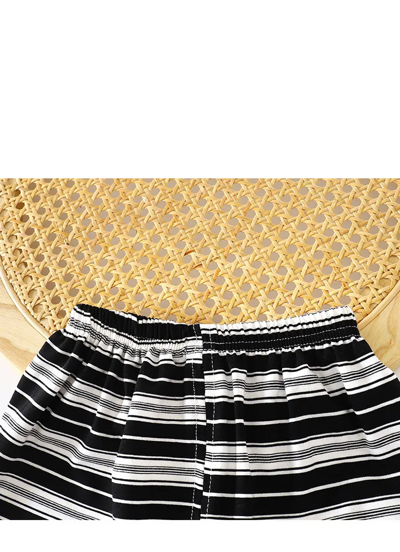 New Summer Children's Top and Bottom Clothes Set Striped Casual Sports Short Sleeve Two Piece Set Clothing